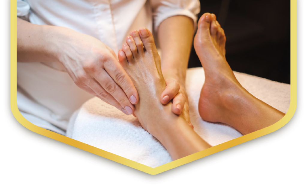 Stimulates the nervous system through the application of gentle yet firm pressure to acupressure points in the feet.